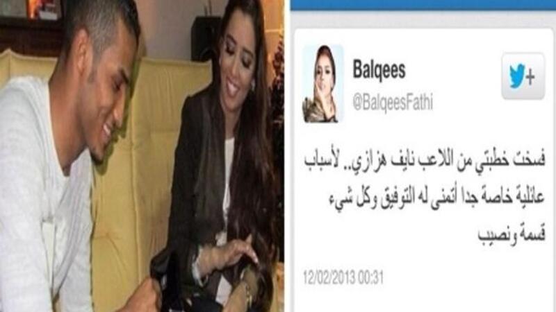 علق لاعب كرة القدم السعودي نايف الهزازي، بطريقة غير مباشرة على قيام خطيبته السابقة الفنانة بلقيس فتحي برفع قضية خلع على زوجها الحالي رجل الأعمال سلطان عبد اللطيف.